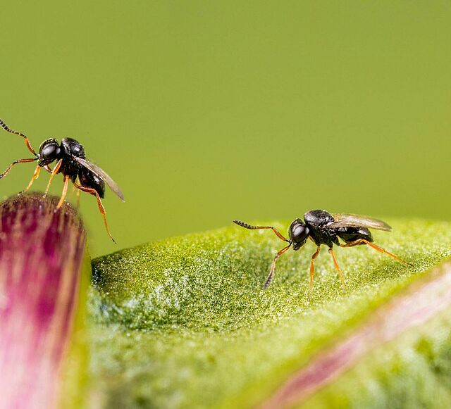 Parasitic wasps are small insects that play a crucial role in natural pest control. They are called "parasitic" because they lay their eggs inside or on harmful pest insects. These parasitic wasp larvae then develop inside the host insect, eventually killing it.