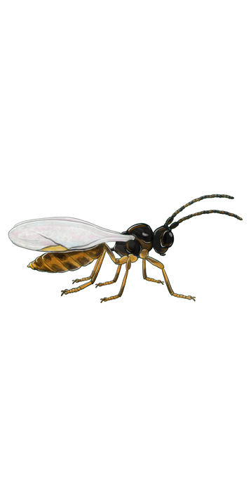 The parasitic wasp Aphidius ervi is available in a bottle (Ervipar).