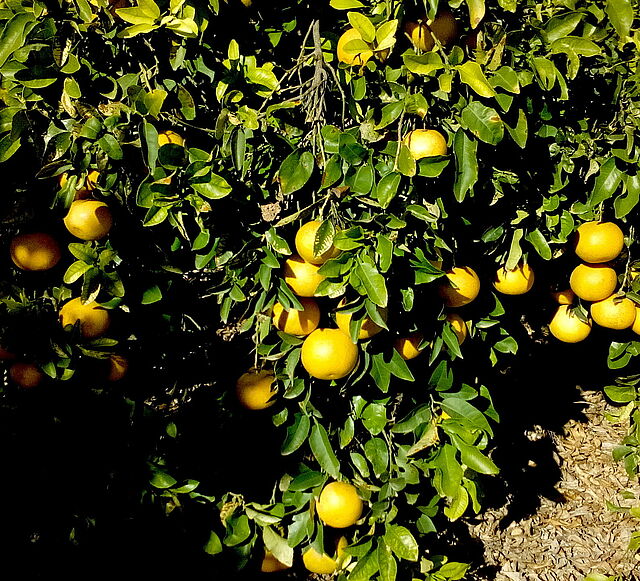 Known for its somewhat bitter taste, this subtropical citrus tree has a fruit that is sour to semi-sweet. Grapefruit (Citrus paradisi) is a hybrid between a pomelo (C. maxima) and an orange (C. sinensis) and comes in many varieties.