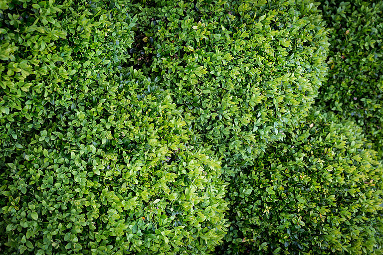 Some 70 species belong to the genus of Buxus of the family of Buxaceae. The plant is also commonly named box (mostly in English-speaking countries) or boxwood (in North America). Buxus are evergreen and slow-growing shrubs and small trees. They can grow up to 2–12 meters. The tree’s leaves are usually small (some 1.5-5 cm long and 0.3-2.5 cm wide) and leathery and their shape is round to lanceolate.