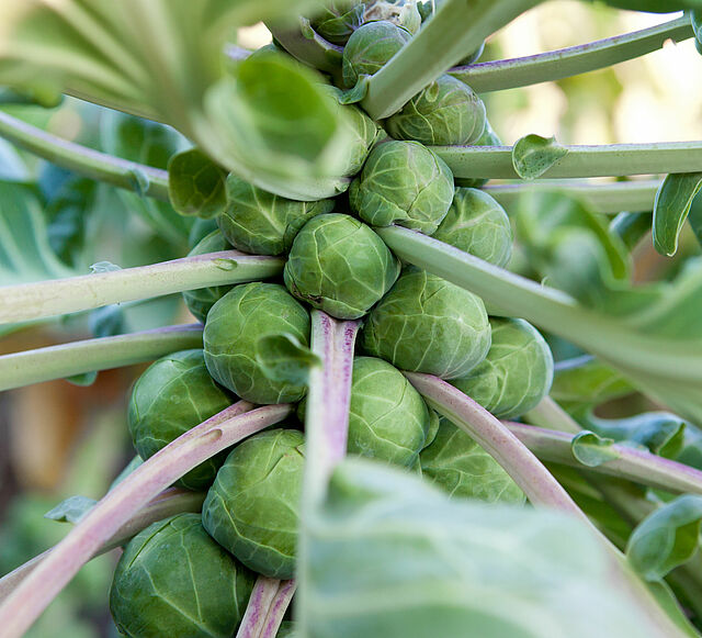 Brussels sprouts (Brassica oleracea var. gemmifera) are a member of the cruciferous vegetable family, closely related to cabbage, broccoli, cauliflower, and kale. The edible part of the plant is the small buds (or sprouts) that form along the length of a thick, vertical stalk.