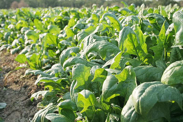 Spinach (Spinacia oleracea) is an edible flowering plant of the Amarantha family that originates in Asia. It is consumed as vegetable and is rich in iron. It is grown as a vegetable worldwide and growths to a height of about 30 cm. It is eaten fresh, steamed or boiled and has a high nutritional value.