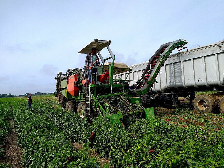 Pedro Militão is one of the two owners of the company Sociedade Agrícola Militão which cultivates about 40 hectares of peppers in the Marinhais area. The entire crop is harvested mechanically. With mechanization, it is very important that all plants reach the end of their cycle with a high level of plant health and vigour so that the harvesting machine can do its work well. ‘With the introduction of mechanical harvesting, we were forced to change our way of producing and we decided to introduce new means that help protect the roots. It was in this way that we first learned about Trianum-P, a biological solution with which we have confirmed an increase in plant resistance to soil fungi, achieving greater vigour and, consequently, obtaining a higher final production,’ explains Pedro Militão.