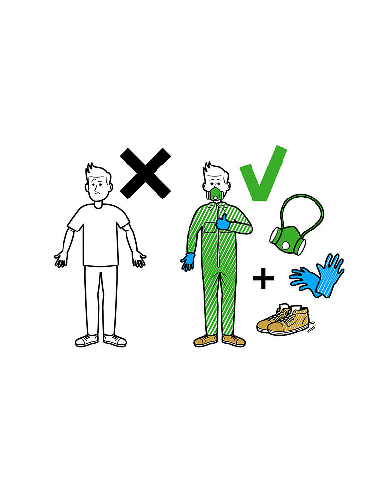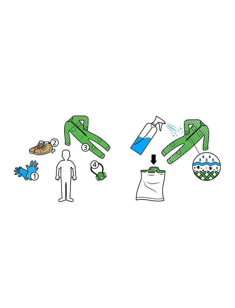 If there is a risk of exposure via your skin, we recommend that you wear protective clothing that covers your arms and legs (e.g. a disposable overall). We also advise you to cover your hands by wearing gloves.