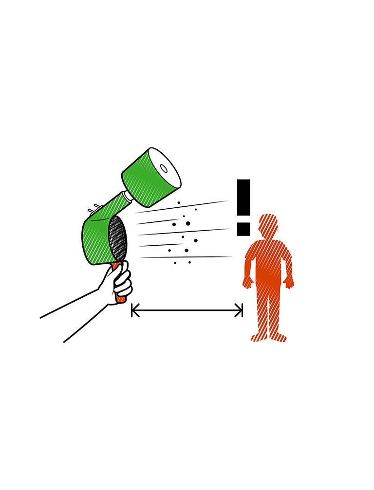 If you use an application device, avoid direct contact and make sure that there is no one in the direct airflow of the blower.