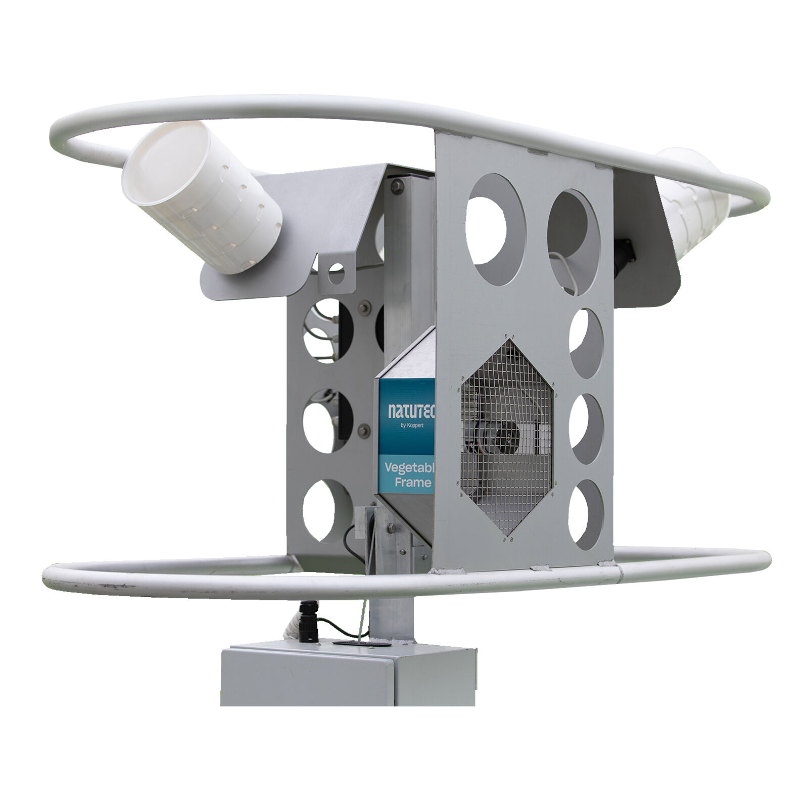 Use the Natutec Vegetable Frame for the distribution of natural enemies in high-wire crops. The Natutec Vegetable Frame can be used for field distribution on two sides of the path. It is equipped with a protection ring around the frame to avoid damage of the high-wires and crops.