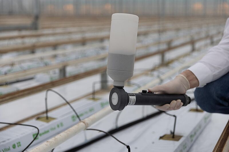 By applying Trianum-G as a plant-hole treatment, the fungus is applied at the perfect place. When the plants start to root in the rockwool slab, the roots are in direct contact with Trianum protecting the plant from soil-borne diseases directly at the start of the cultivation. In the beginning of the season, irrigation of the crop is often limited, which makes application of Trianum-P (wettable powder) difficult. A Trianum-G application on the plant hole gives an opportunity to apply Trianum without overwatering the crop.’