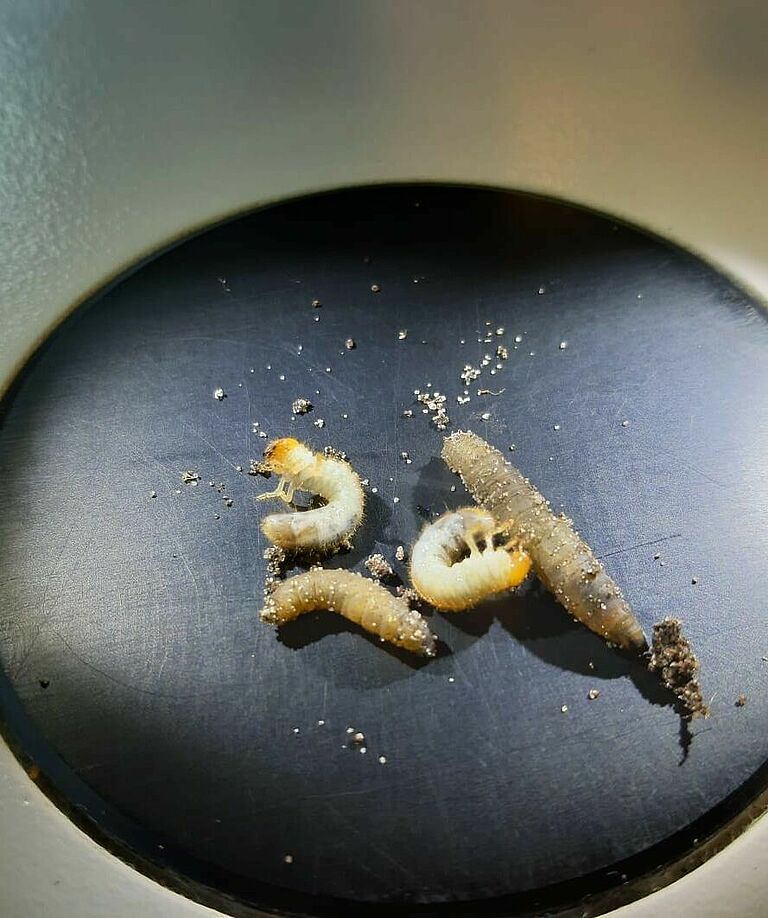 Larval feeding causes brown spots in grasslands, turf and cereal fields. Exit holes of the burrows of the larvae might also be visible. Secondary damage may come from birds and rodents feeding on larvae and digging up turf.