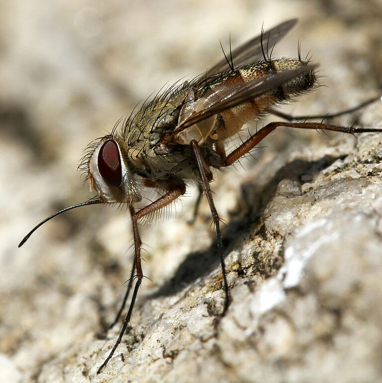 Stable flies typically congregate on the legs of livestock to feed, and the population size can be assessed by counting the number of Stomoxys on the animals’ front legs. The flies become an economic concern when the average number per leg is as low as two. When populations are very large (> 25 flies/leg), the insects will begin to cluster on the animals’ undersides and flanks as well. Stable flies are persistent, intermittent feeders, returning time and again to feed off animals in short 2–5 minute sessions. The bites are extremely painful, but the flies will typically ignore swatting, stamping and other strategies used by animals to avoid being bitten. Damage caused by parasitism of Stomoxys spp. on livestock includes: