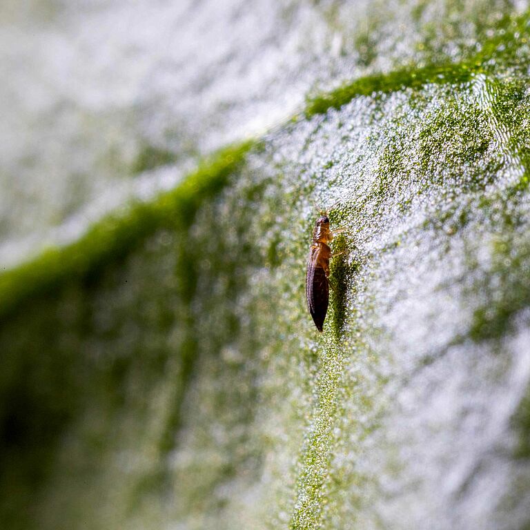 One of the earliest signs of a Thrips parvispinus infestation is the deformation of young shoots and leaves. As these thrips feed on plant tissue, they inject toxins that cause the foliage to twist, curl, and become distorted. This damage can severely impact the plant’s growth and overall health, reducing its ability to photosynthesize efficiently and stunting its development.